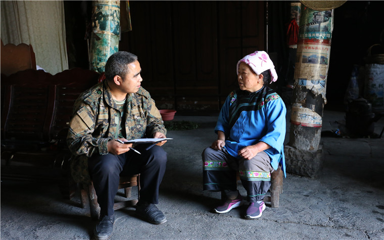 志願者吳獻高(gāo)挨家挨戶走訪貧困戶,傳達扶貧政策。湖南文明網 彭團 攝