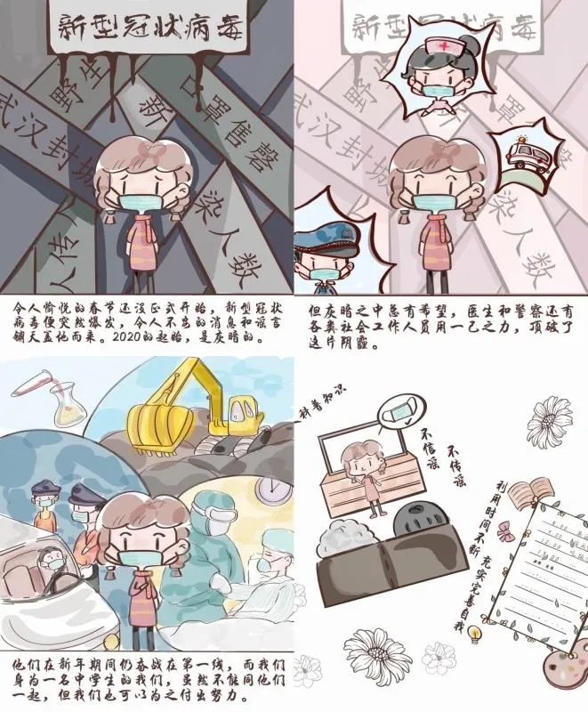 圍繞“衆志成城,抗擊疫情”為(wèi)主題制作宣傳小報,宣傳防疫知識、防護措施、家庭防護行(xíng)動、記錄父母在抗擊疫情中工作、緻敬奮戰在抗擊疫情一(yī)線的(de)醫護人員、軍人、警察,還有(yǒu)保障我們生活的(de)快遞員、居委會社工等工作者,讴歌真善美,傳播正能量。