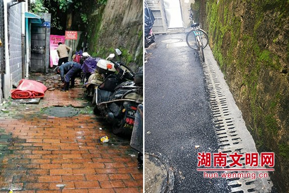 湖南文明網10月22日訊(記者 彭團)“這條路翻新後,我們出行(xíng)方便多了!”10月21日上午,長(cháng)沙雨花區侯家塘街道(dào)紅(hóng)旗片區四片15棟5單元的(de)租戶譚女士出門時開心地(dì)對記者說。當日,記者在紅(hóng)旗片區四片15棟5單元樓下看到,雖然正在下雨,路面卻沒有(yǒu)像之前一(yī)樣積水。