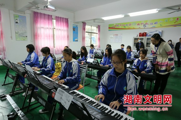 與會代表走進桂陽縣仁義中學(xué)鄉村少年(nián)宮內(nèi),參觀特色項目。圖片來源:湖南文明網 記者 彭團 攝