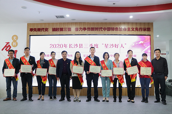 近年(nián)來,長(cháng)沙縣高(gāo)度重視(shì)榜樣引領,發出“建設厚德星沙 打造好人之城”的(de)号召,不斷培育和(hé)踐行(xíng)社會主義核心價值觀,營造崇德向善、見賢思齊、德行(xíng)天下的(de)社會風尚,先後組織開展身邊好人、道(dào)德模範、最美志願者等一(yī)系列評選活動,樹立了一(yī)批身邊的(de)先進典型。率先出台道(dào)德模範和(hé)“好人”禮遇幫扶十項措施,推動形成好人有(yǒu)好報的(de)社會價值導向。活動現場公布了2020年(nián)長(cháng)沙縣第二、第三季度“星沙好人”名單,為(wèi)路口鎮黃惠、福臨鎮李密芝、長(cháng)龍街道(dào)張勇軍等22位獲獎的(de)星沙好人們頒發證書。