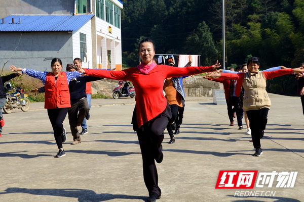 手指操、經絡拉伸操、舞蹈基礎動作……高(gāo)鳳英一(yī)邊示範,一(yī)邊講解如(rú)何掌握形體鍛煉的(de)基本方法,帶動村民們增強鍛煉身體的(de)意識。