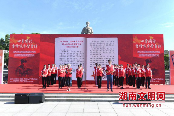 湖南省學(xué)雷鋒志願服務形象大使魏哲浩、任菲莉及志願者代表,共同發起“四季同行(xíng)·雷鋒家鄉學(xué)雷鋒”主題志願服務活動倡議。圖片來源:湖南文明網
