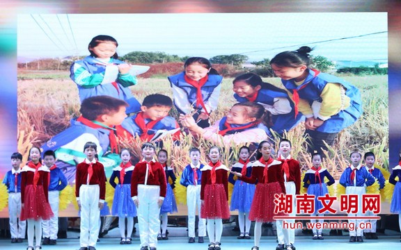 蓮花中心小學(xué)在情景詩朗誦中,還原了孩子(zǐ)們把“勞動課”搬到田間地(dì)頭的(de)場景。圖片來源:湖南文明網 記者 彭團 攝