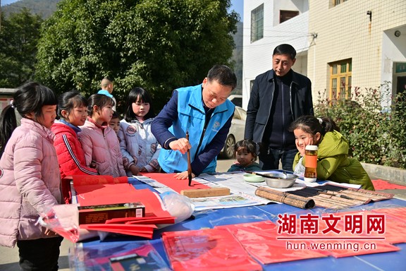 省科(kē)協志願者書寫春聯贈送村民。圖片來源:湖南文明網