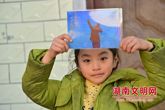 磚灣小學(xué)學(xué)生手舉自(zì)己的(de)照片。圖片來源:湖南文明網