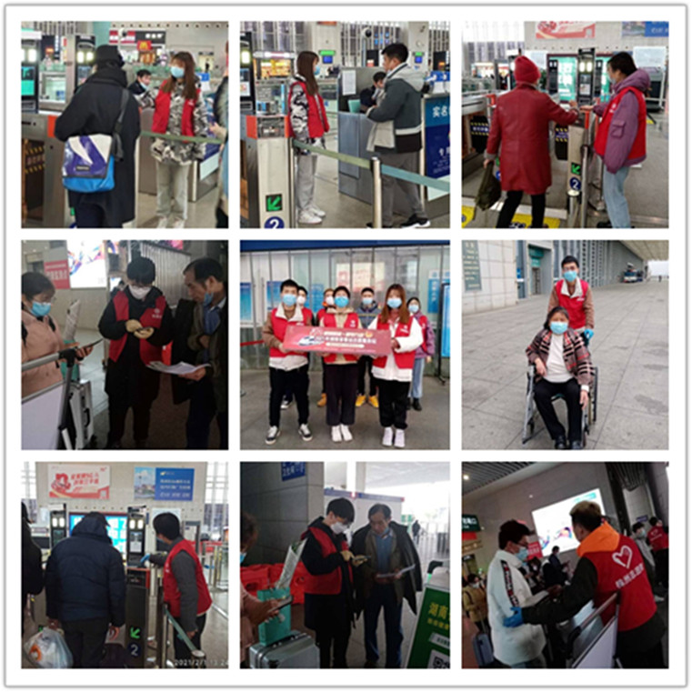 1月28日起,就地(dì)過年(nián)的(de)大學(xué)生、研究生在火車站參加春運暖程志願服務。圖片來源:株洲文明網