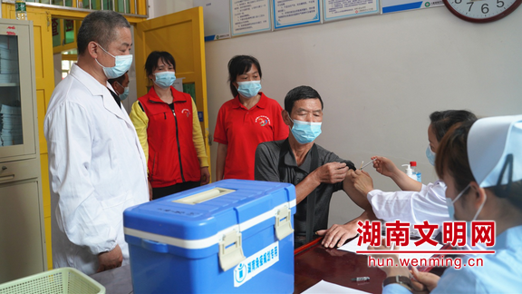 邵陽隆回縣志願者引導群衆有(yǒu)序接種疫苗。圖片來源:湖南文明網