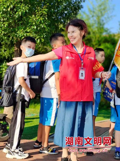 長(cháng)沙東塘街道(dào)浦沅社區“老口子(zǐ)”親情服務隊的(de)志願者參與護學(xué)活動。圖片來源:雨花區文明辦