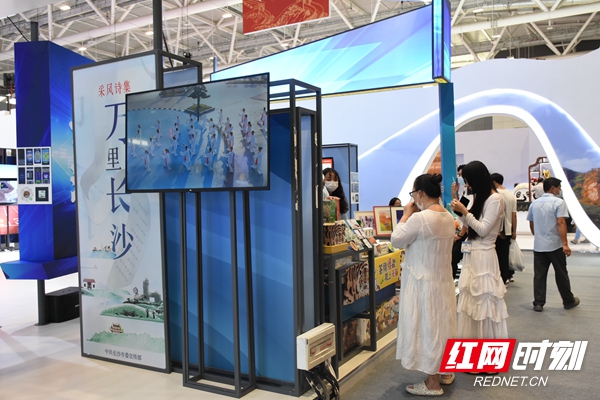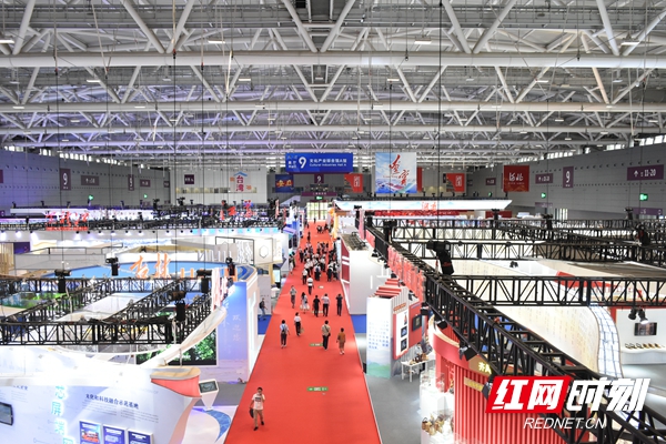 記者在現場看到,參展觀衆可(kě)從展位的(de)任何方向進入湖南館,參觀路線靈活多變。走進主展區——文化科(kē)技融合展區,這裏以“文化科(kē)技融合 開拓文化新業态”為(wèi)主題,展示了湖南5家省管國(guó)有(yǒu)文化企業和(hé)馬欄山視(shì)頻文創産業園的(de)突出成果;在第一(yī)特色展區——建黨百年(nián)紅(hóng)色展區,紅(hóng)色影視(shì)節目、紅(hóng)色舞台劇本、紅(hóng)色主題活動、紅(hóng)色文創産品等4類展品琳琅滿目,精準傳達了“傳承紅(hóng)色基因 開啓百年(nián)新征程”的(de)主題;而在以“弘揚湖湘文化 開創文旅新篇章(zhāng)”為(wèi)展示主題的(de)第二特色展區——傳統文化創新展區,錦繡潇湘、網紅(hóng)長(cháng)沙以實物展台、圖文展示、視(shì)頻展播等形式精彩亮(liàng)相,吸引着來來往往觀衆的(de)目光。