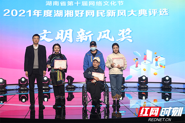 11月7日,2021年(nián)度湖湘好網民新風大典評選頒獎儀式在紅(hóng)網演播中心舉行(xíng)。圖片來源:紅(hóng)網時刻