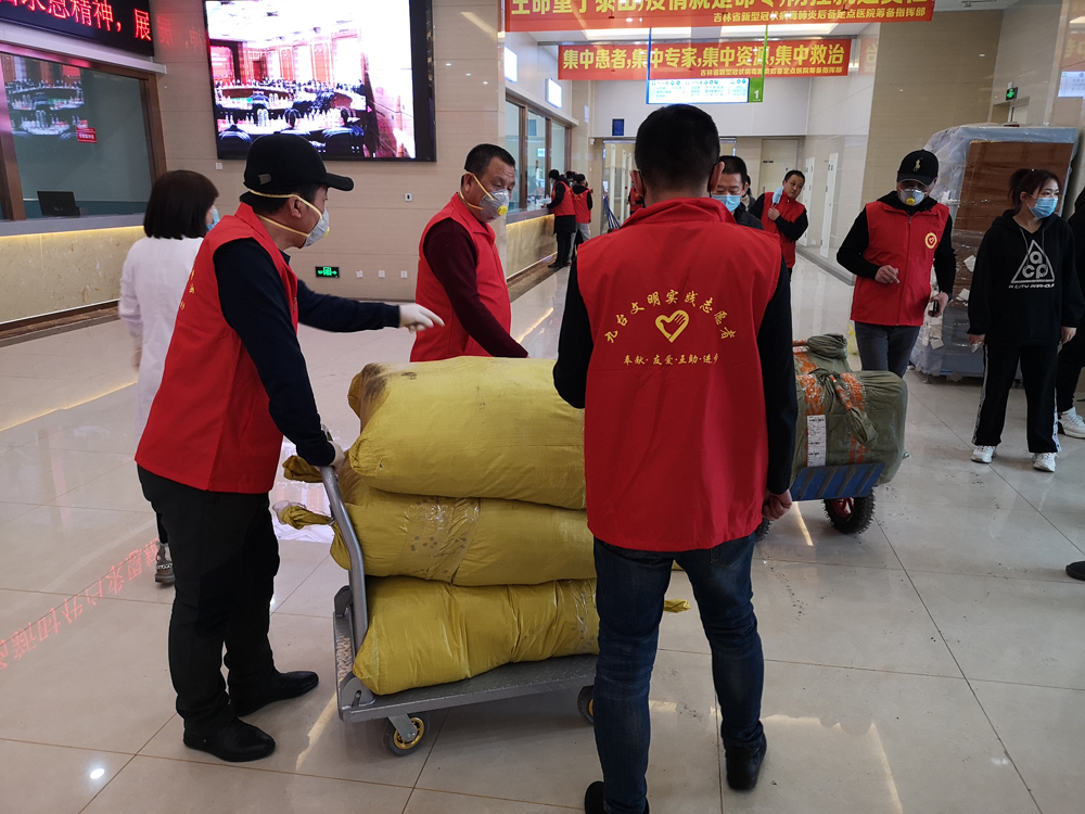 在新冠肺炎疫情防控期間,志願者為(wèi)吉林省傳染病醫院提供服務。