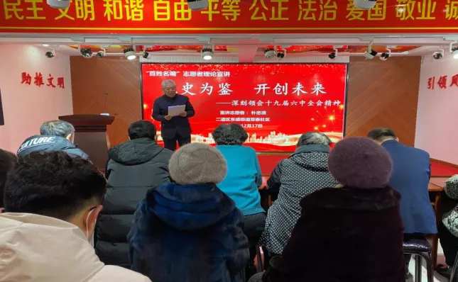 長(cháng)春市(shì)二道(dào)區東盛街道(dào)理(lǐ)論宣講團團長(cháng)樸忠清到亞泰社區新時代文明實踐站宣講黨的(de)十九屆六中全會精神